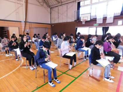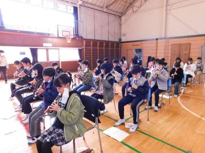 6年生のために入退場曲の演奏練習をしています。