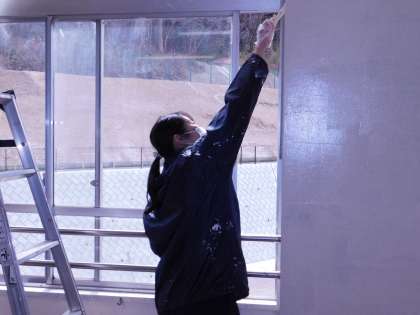 用務主事さんと管理職、少人数担当の先生の4人で、力を合わせて塗りました。