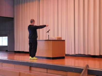 今日は式の流れに沿って、卒業証書授与も行い、通し練習をしました。先生がお手本を見せています。