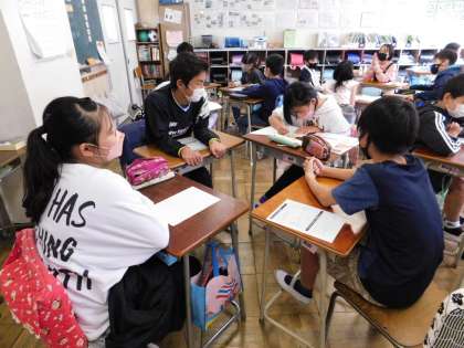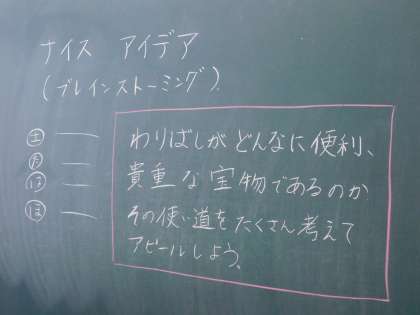 5年1組では「ブレインストーミング」の手法を使って、効果的なプレゼンテーションをグループで考えました。