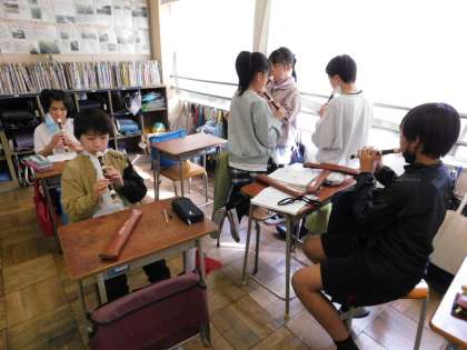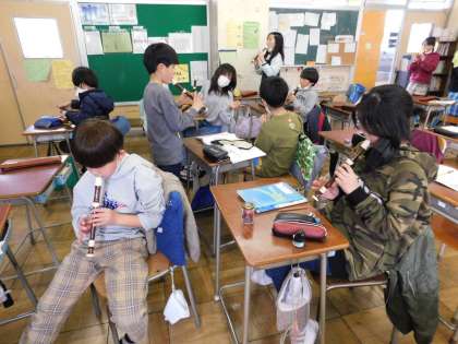 5年2組は、卒業式で演奏する6年生の入退場曲の練習をしていました。