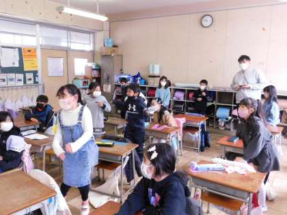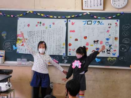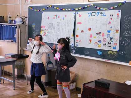 ダンスグループの子が踊りを披露しています。見ている子も一緒にノリノリです。