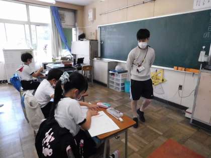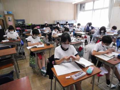 6年2組の教室です。対称な図形の学習です。
