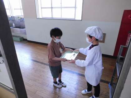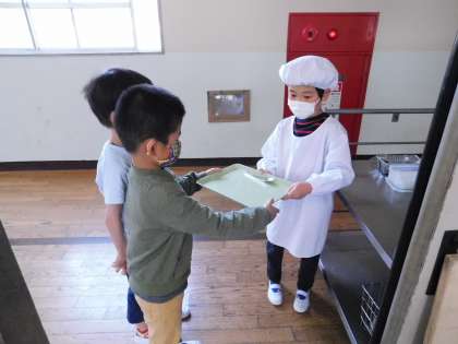 廊下の外では、お盆やスプーンなど渡してくれます。
