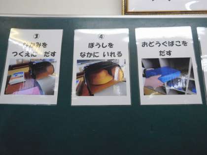 教室には何をすればいいのか、写真が貼ってあります。