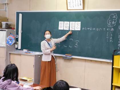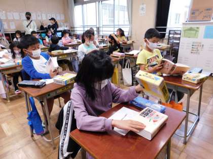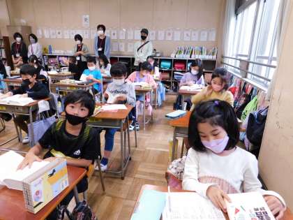 3年2組は国語辞典の調べ方をゲーム形式で学習していました。