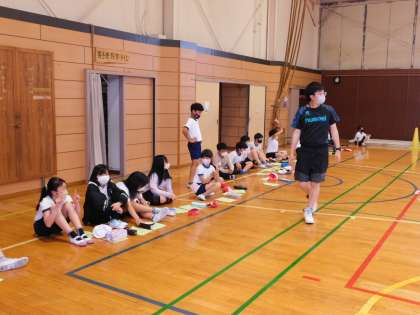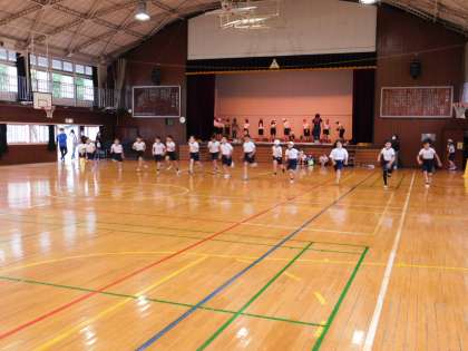 午後は5年生が体育館で、シャトルランと立ち幅跳びのやり方を練習しました。