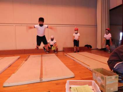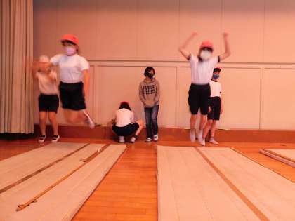 舞台では立ち幅跳びの練習中です。