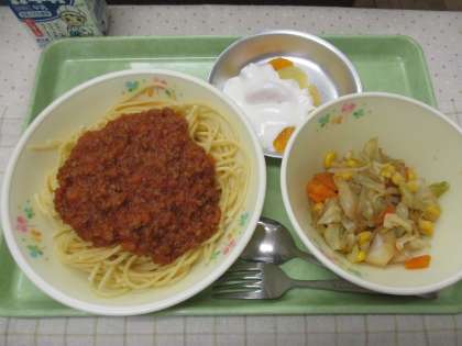 人気メニューなスパゲッティミートソースでした。
