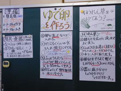 5年生が「ゆで卵作り」の調理実習をしました。