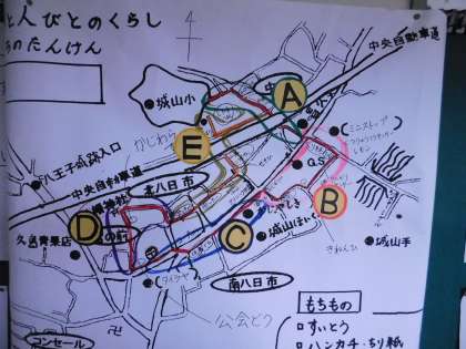 3年生が町探検に行った後、方面別の特徴や気づいたことを、グループで地図にまとめました。