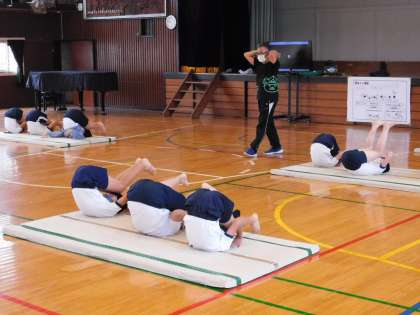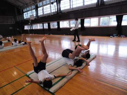 今日の動きの補助運動です。手の突きを意識しています。