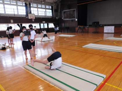 グループで動画を撮りながら、練習をしています。