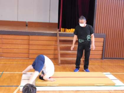 チャレンジタイム(1回目)が終わり、先生からアドバイスをもらいます。お手本になってくれる子もいます。