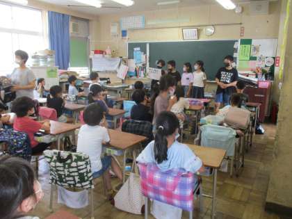 まずは2年生のクラスに行った5年生メンバーの様子です。