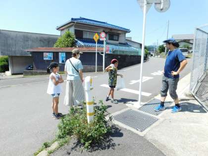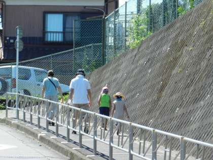 外に出てみると、すでに帰られる方、これから学校に向かう方とすれ違います。みんなにマスクをはずすよう声掛けします。