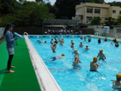 今日は、絶好のプール日和でした。1・2・4・6年生がプールに入りました。写真は6年生です。