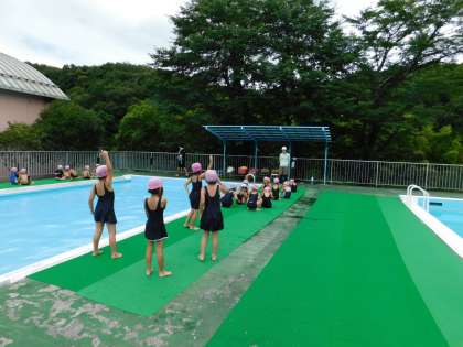 7月8日、1年2組がプールに入りました。