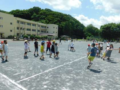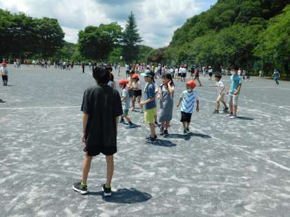 この日は午後から天気が良くなり、暑い中でしたが熱中症に気をつけながら、前半は校庭で活動しました。