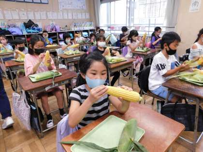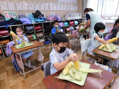 3年生トウモロコシの皮むき5