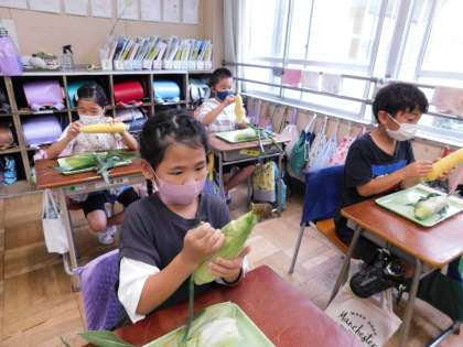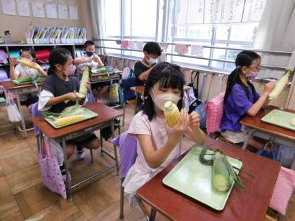 3年生トウモロコシの皮むき6