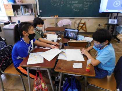 盛り上がっています。オンラインで参加している子もいます。