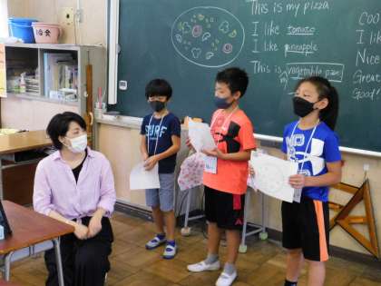 最後に班から代表の子が出て、自慢のピザを発表しました。