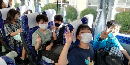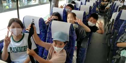 1号車バス内です。みんな元気です。