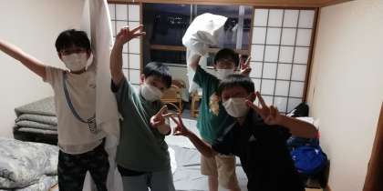 お風呂の裏で、部屋レクと布団敷きです。