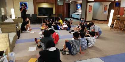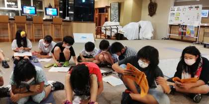 本日、最後の記事です。ロビーで班長会をしました。明日の行動の確認です。