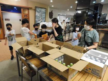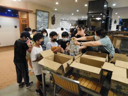 夕食後には、ペットボトルが配られました。