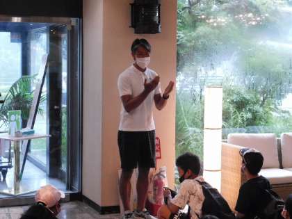 宿舎の支配人からもご挨拶をしてもらいました。外は雨が降っています。この後は小田原城を目指します。北条氏は城山っ子に味方してくれるのでしょうか。