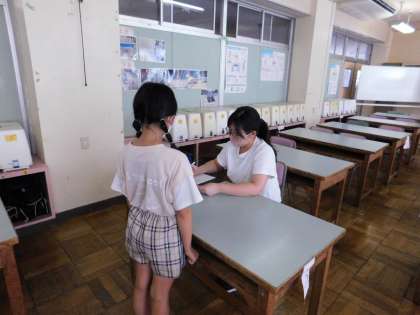 8月19日(金)、6年生が21日(日)から始まる日光林間学校の事前健診に登校しました。元気そうな顔を見せてくれて何よりです。