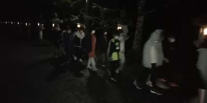 そのうちに、降っていた雨もやみ、みんなでナイトハイクに行くことができました。ラッキーです。