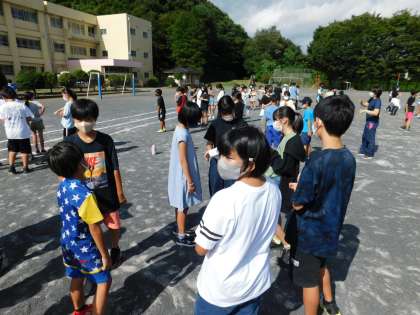 大勢が集まるので、暑くならない1時間目に校庭で行いました。