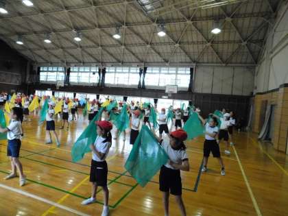 5時間目は体育館で3,4年生が表現の練習をしていました。