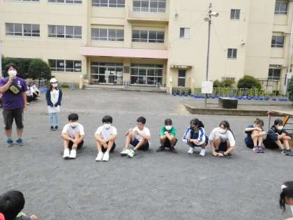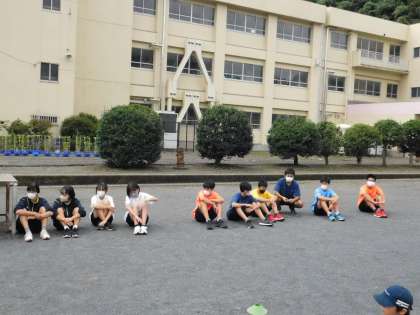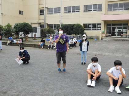 サタデースクールを担当してくれている先生から挨拶がありました。城山中学校の陸上部のみんながお手伝いにきてくれました。