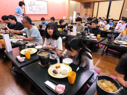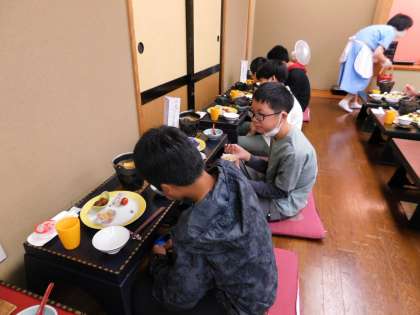 朝食中です。