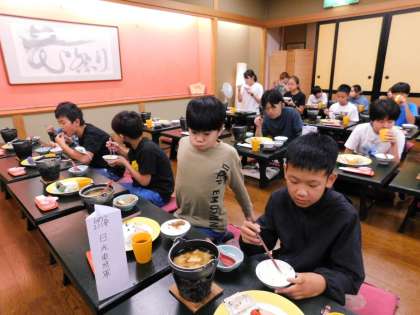 朝食中です。