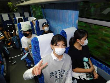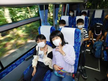 バス車内です。スタート地点までは10分もかかりません。