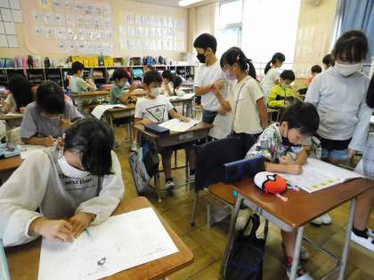 2年1組も算数の学習プリントをしていました。早めに終わった子もいたようですね。
