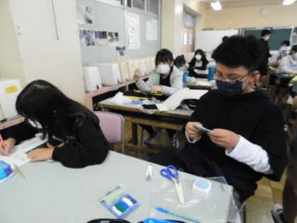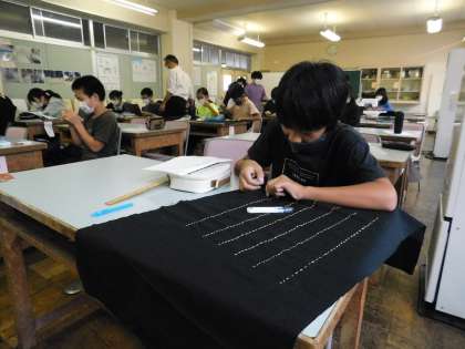 6年3組の子たちが「クッションカバー作り」に取り組んでいました。