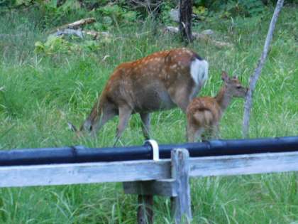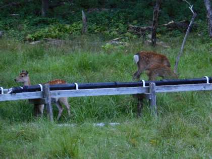 源泉近くには、鹿がえさを食べにたくさん来ていました。