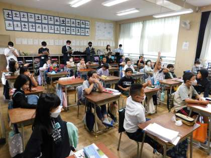 当日は、教育実習生の2人や近隣小学校の2年次教員数名が授業参観しました。