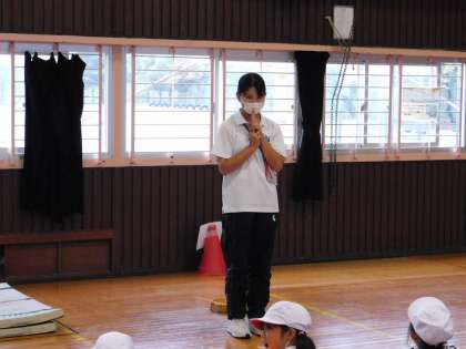10月6日、2人の実習生が実習の成果を見せる公開授業をしました。写真は1年1組の実習生です。