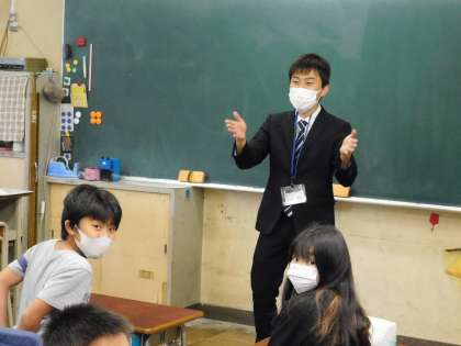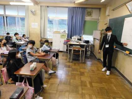 10月6日、4年2組で実習生が成果を公開する授業を行いました。