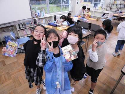 6日は学校司書の先生が来てくれました。(毎週木曜日)3年2組の図書にお邪魔しました。本の返却中です。