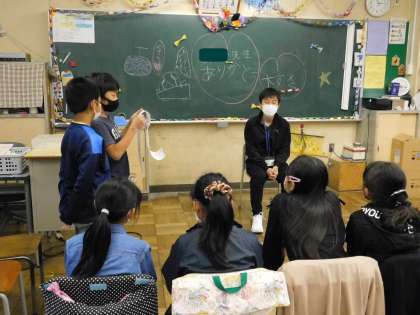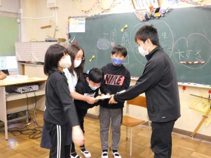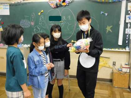 いろいろなゲームをした後、先生にお礼の気持ちを込めたプレゼントを渡していました。