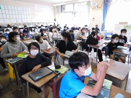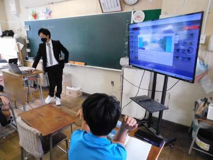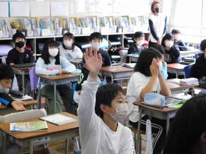 写真は5年2組の理科の授業です。タブレットを活用した授業でした。