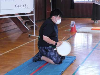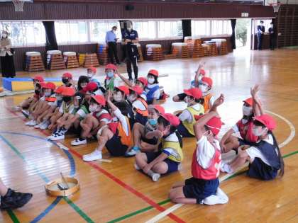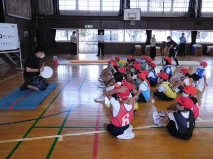 もしもしタイムです。動きのよかった児童を、前時までの動画と比較して、意識させたい動きを共有しています。
